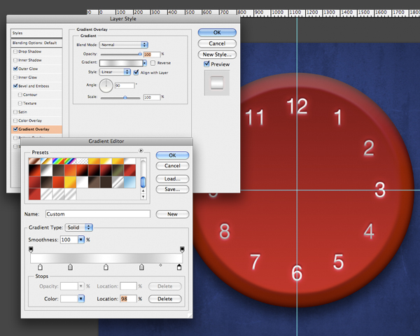 Now we get to add some effects. Double-click on the "Main Clock" layer to open up the Layer Style dialog box. Enter the following adjustments (everything else can remain as the default setting):