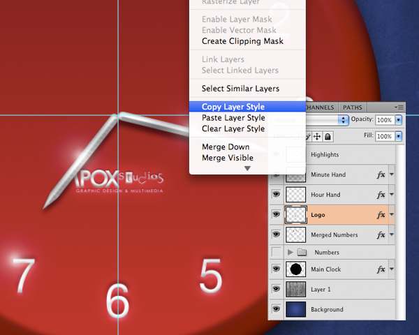 Copy the layer style of the numbers by right-clicking and selecting Copy Layer Style, then right-click on your "logo" layer and select Paste Layer Style. Decrease the bevel effect until it looks more realistic (Bevel: Size = 5, Soften = 0).