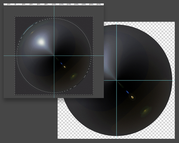 All you have to do now is cut out the fat. Create some quick center guides like we did earlier. Choose your Circular Marquee Tool (M), then drag a circle from the center out to the edge of the glare. Be sure to hold Shift + Option while dragging.