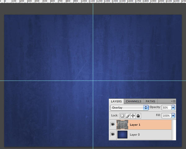 For Psd Plus members, Drag in the supplied "concreteTexture.jpg" image that is found in the "source" file in this tut's member download, or grab a texture you prefer off the net. Make sure it is on a layer above the "background." Scale (Command + T) and adjust as needed. Set the color mode to Overlay (V, then Shift + or -), and reduce the Opacity of the layer to 30% (V, then 3). This will give us a nice subtle effect.