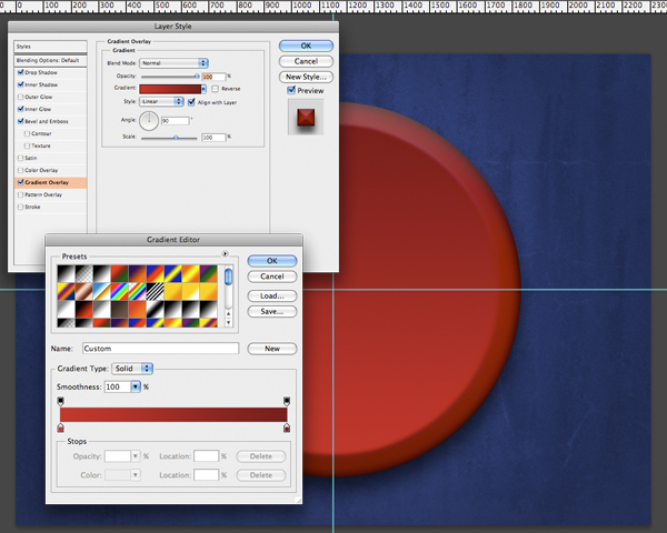 - Gradient Overlay: Use the same color of gradient that was saved in Step 10, Angle = 96.