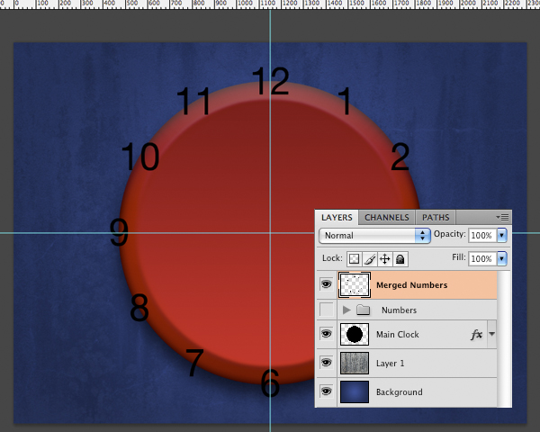 Resize the Merged Numbers layer (Command + T), so it fits inside the clock as shown below. Be sure to hold Option + Shift while dragging to constrain the proportions to the center.